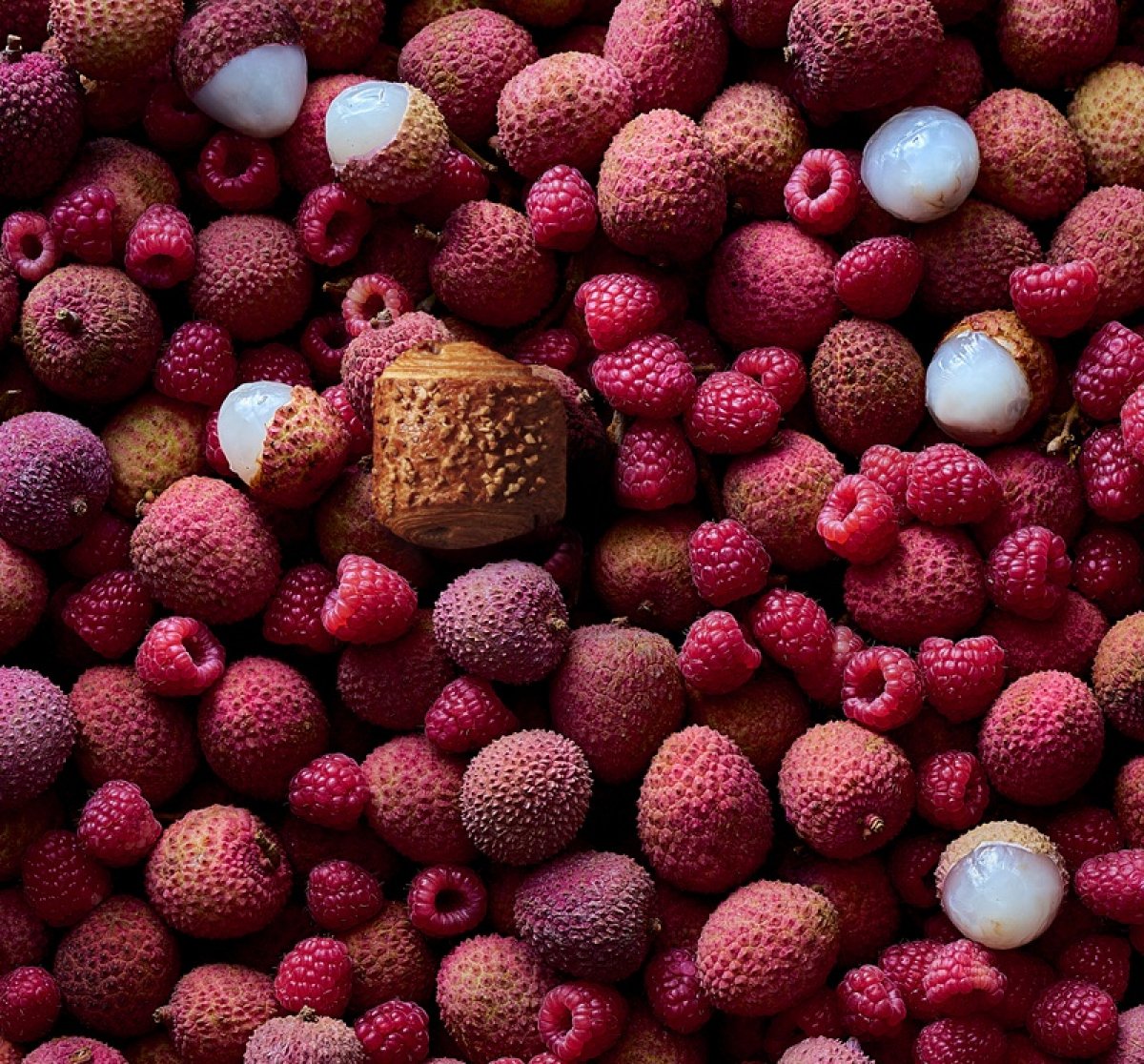 L’alliance entre la douceur du litchi et l’acidité naturelle de la framboise offre une expérience gustative unique, rehaussée par un topping d’amandes concassées.